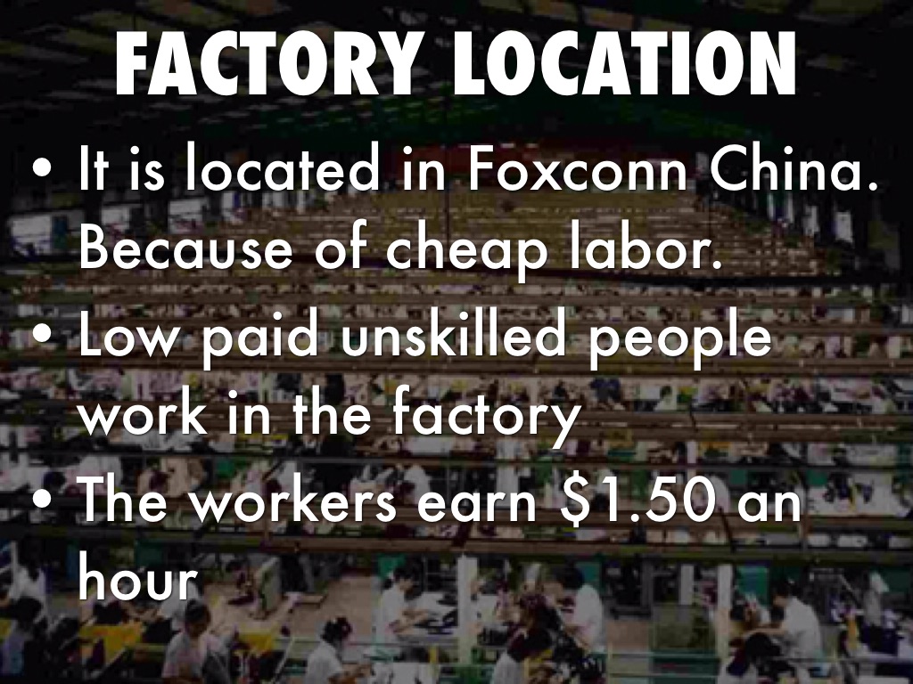 It is located in Foxconn China. Because of cheap labor.