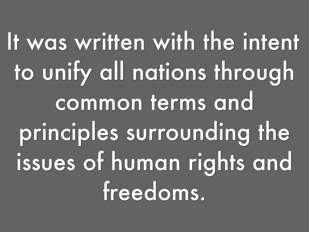 It was written with the intent to unify all nations through common terms and principles surrounding the issues of human rights and freedoms.