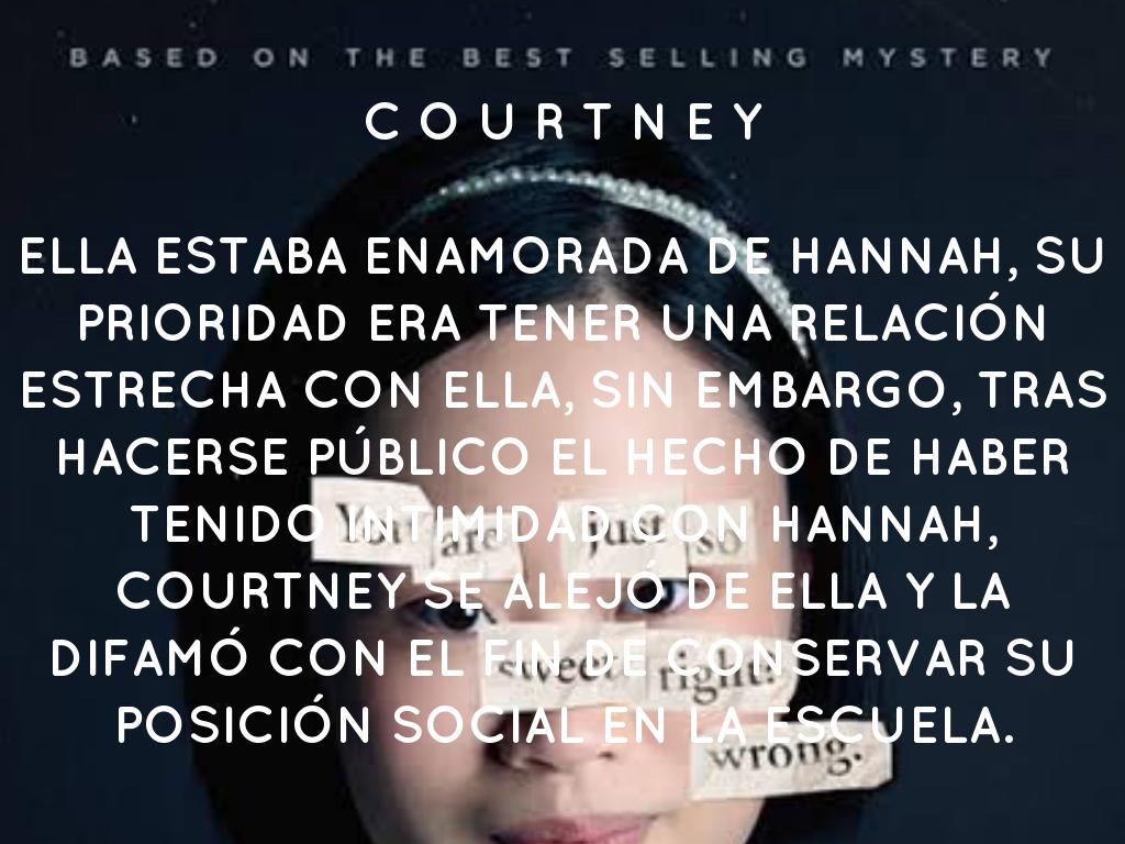 ELLA ESTABA ENAMORADA DE HANNAH, SU PRIORIDAD ERA TENER UNA RELACIÓN ESTRECHA CON ELLA, SIN EMBARGO, TRAS HACERSE PÚBLICO EL HECHO DE HABER TENIDO INTIMIDAD CON HANNAH, COURTNEY SE ALEJÓ DE ELLA Y LA DIFAMÓ CON EL FIN DE CONSERVAR SU POSICIÓN SOCIAL EN LA ESCUELA.