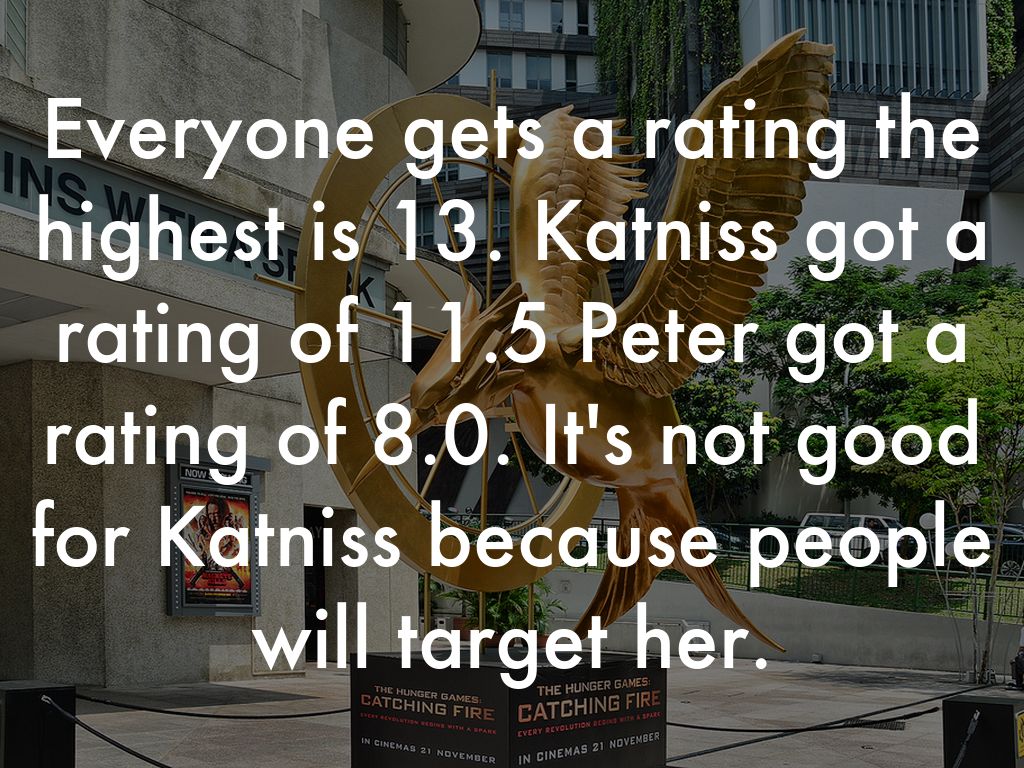 Everyone gets a rating the highest is 13. Katniss got a rating of 11.5 Peter got a rating of 8.0. It's not good for Katniss because people will target her.