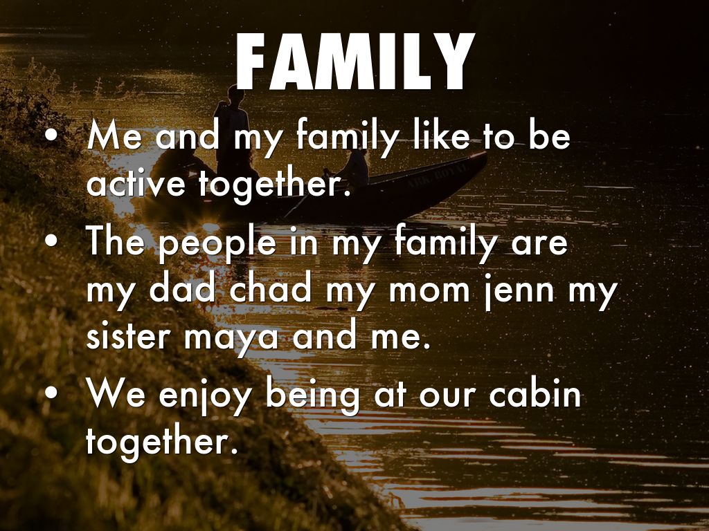 The people in my family are my dad chad my mom jenn my sister maya and me.