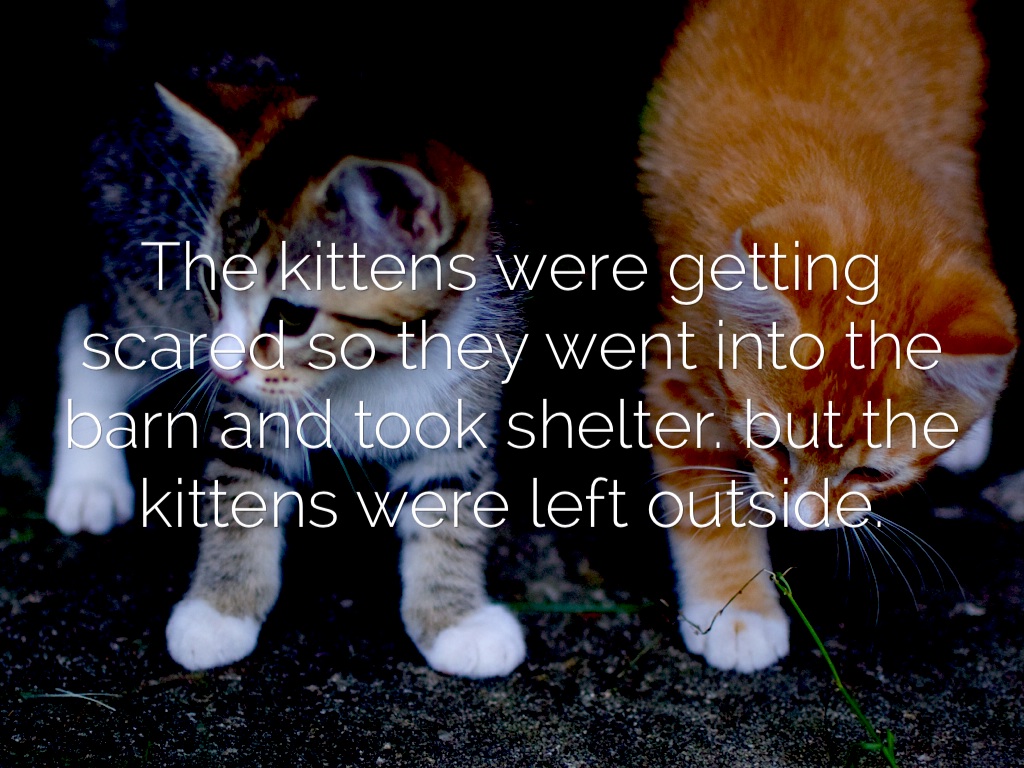 scared so they went into the barn and took shelter. but the kittens were left outside.