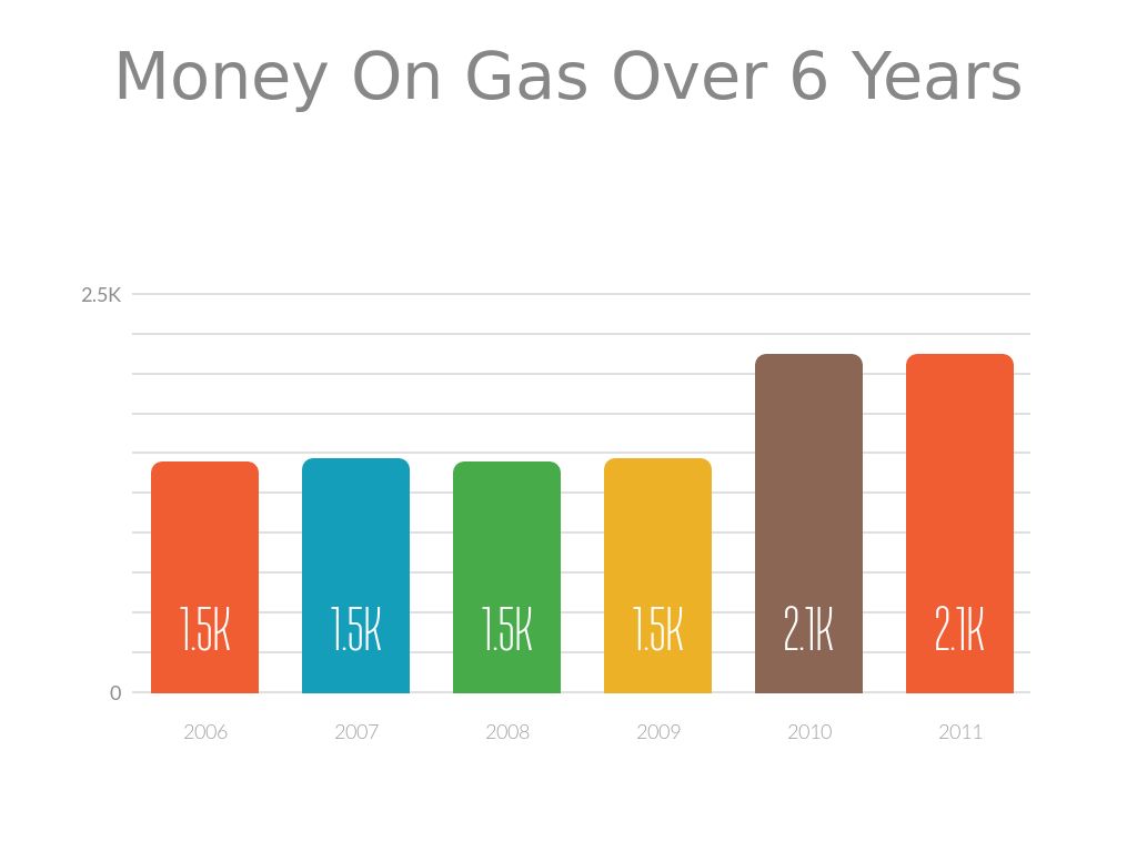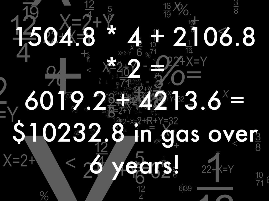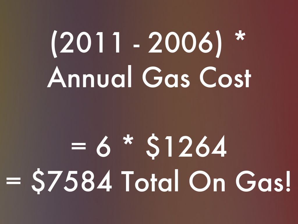 6019.2 + 4213.6 = $10232.8 in gas over 6 years!