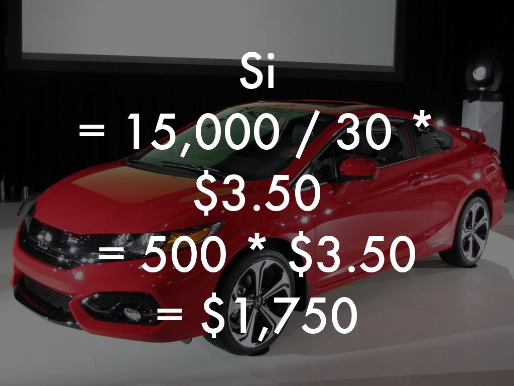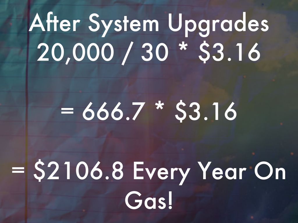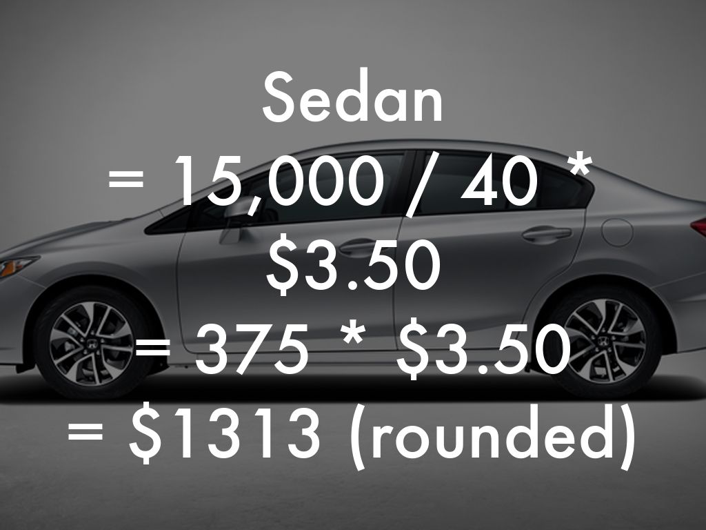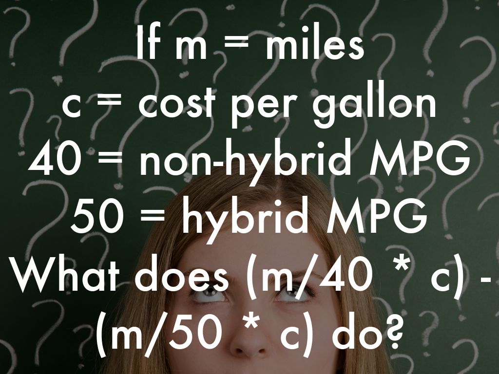 • This time 2 variables, 1 for miles traveled, 1 for cost per gallon