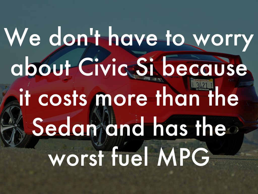 We don't have to worry about Civic Si because it costs more than the Sedan and has the worst fuel MPG