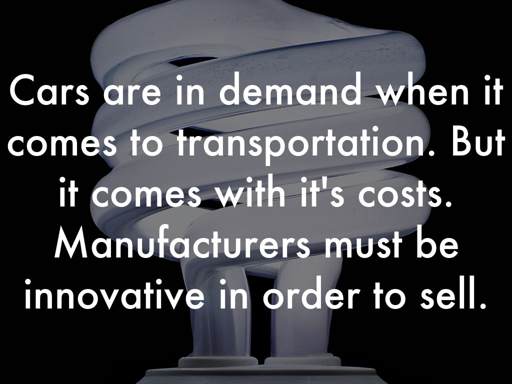 Cars are in demand when it comes to transportation. But it comes with it's costs. Manufacturers must be innovative in order to sell.