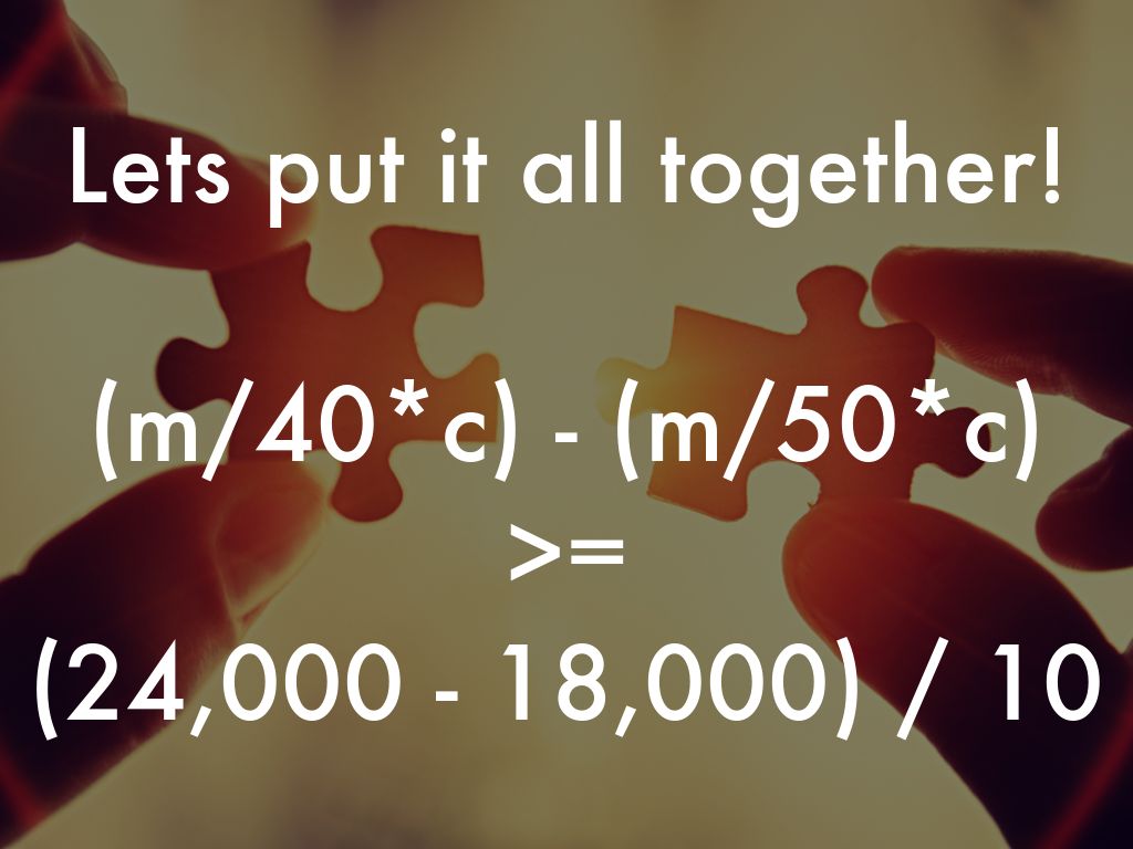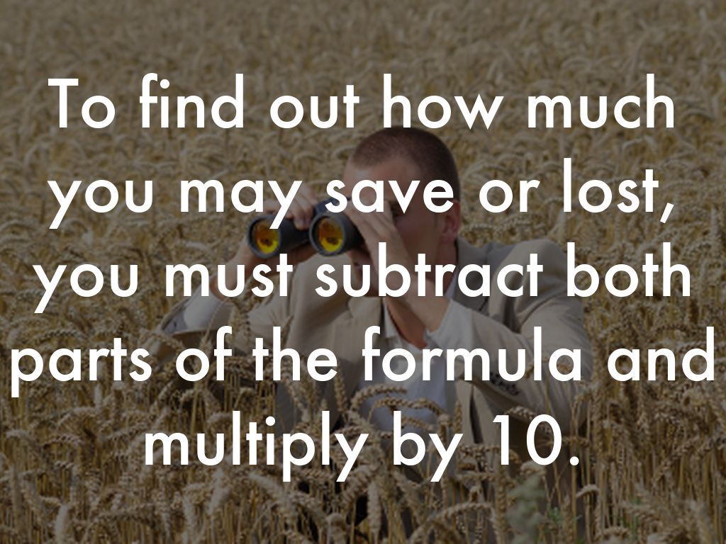 To find out how much you may save or lost, you must subtract both parts of the formula and multiply by 10.
