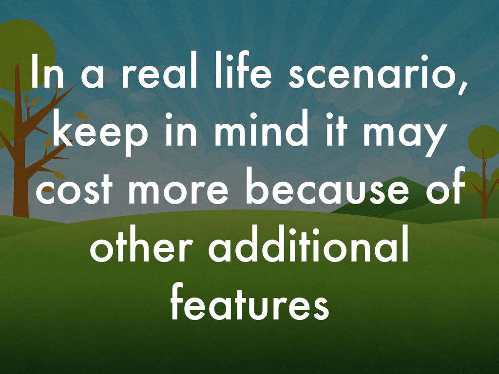 In a real life scenario, keep in mind it may cost more because of other additional features