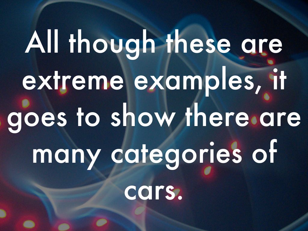 All though these are extreme examples, it goes to show there are many categories of cars.