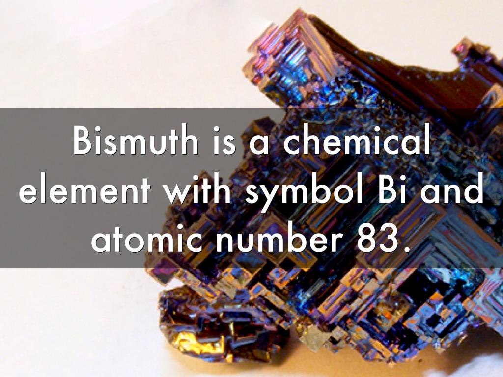 Bismuth is a chemical element with symbol Bi and atomic number 83.