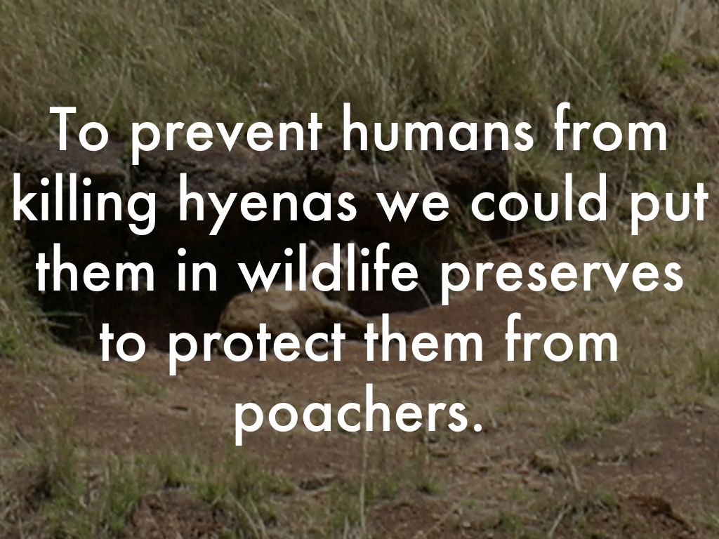 To prevent humans from killing hyenas we could put them in wildlife preserves to protect them from poachers.