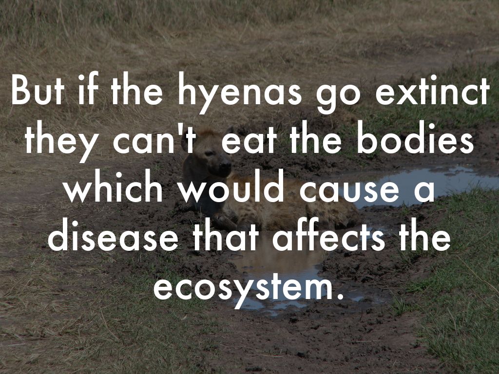 But if the hyenas go extinct they can't eat the bodies which would cause a disease that affects the ecosystem.