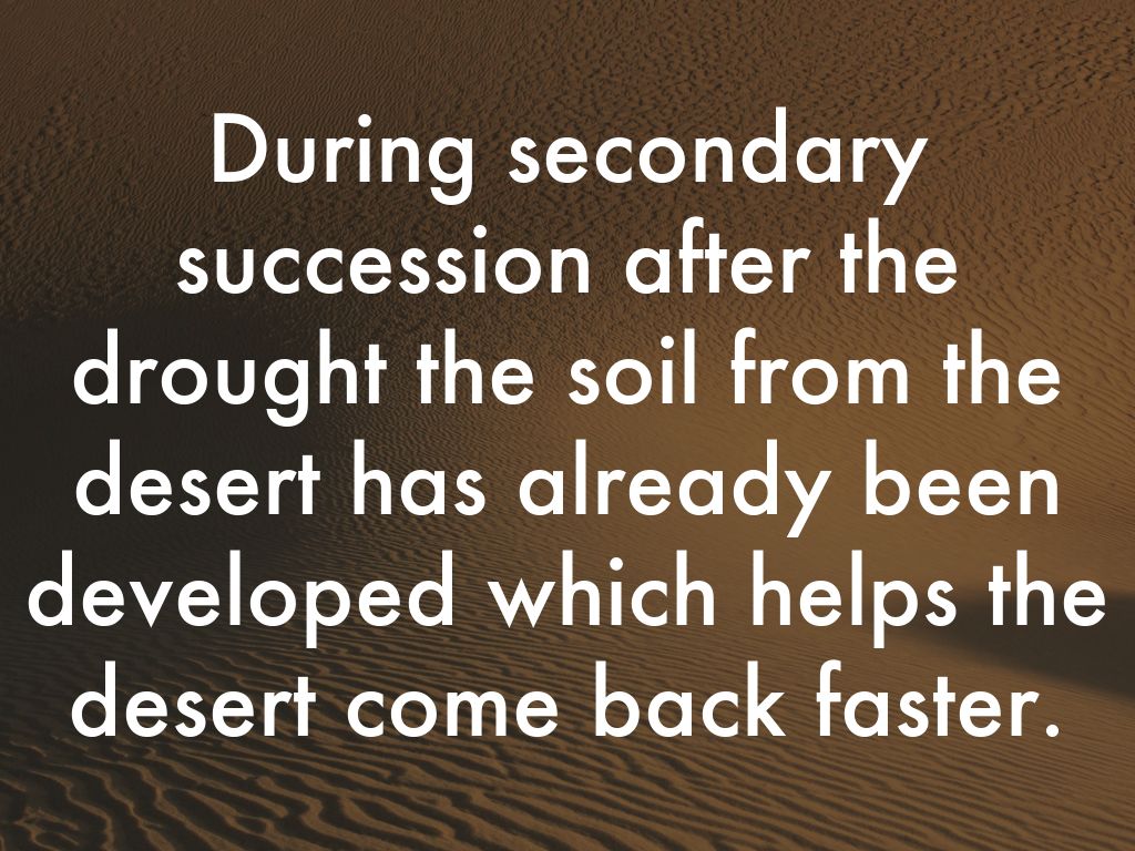 During secondary succession after the drought the soil from the desert has already been developed which helps the desert come back faster.