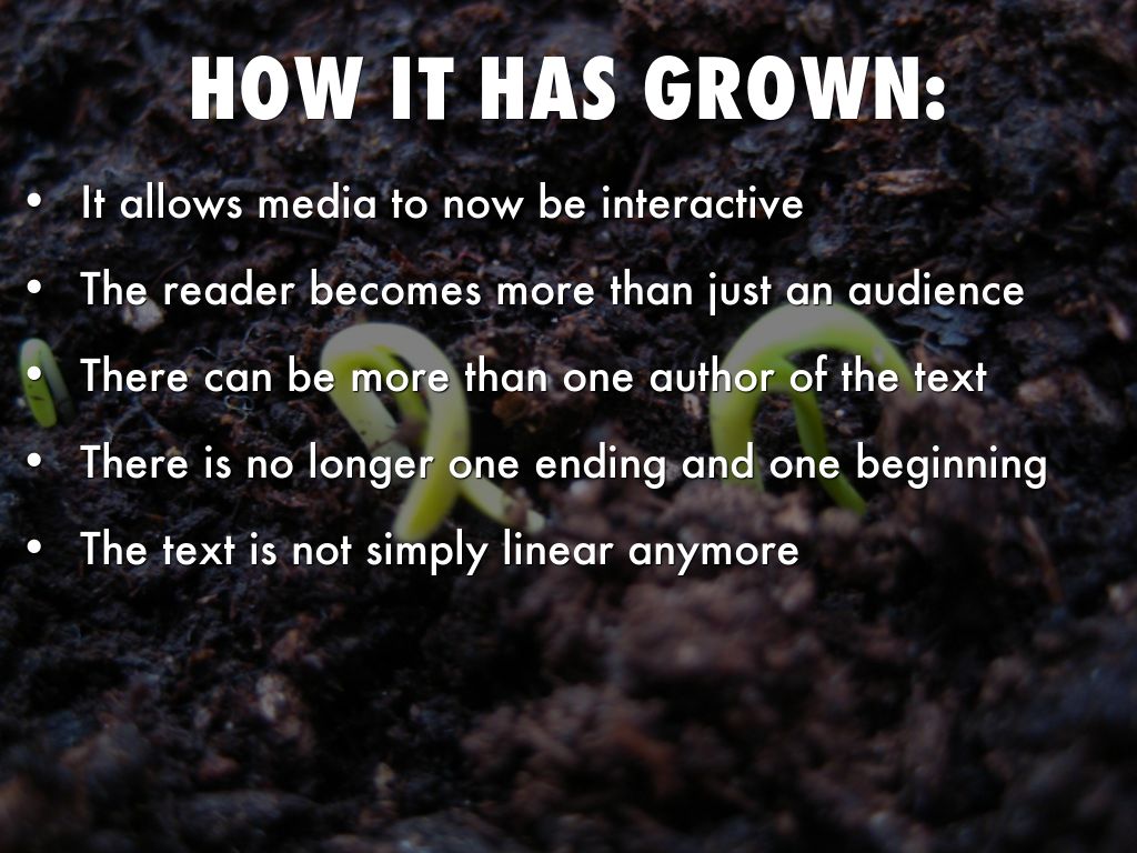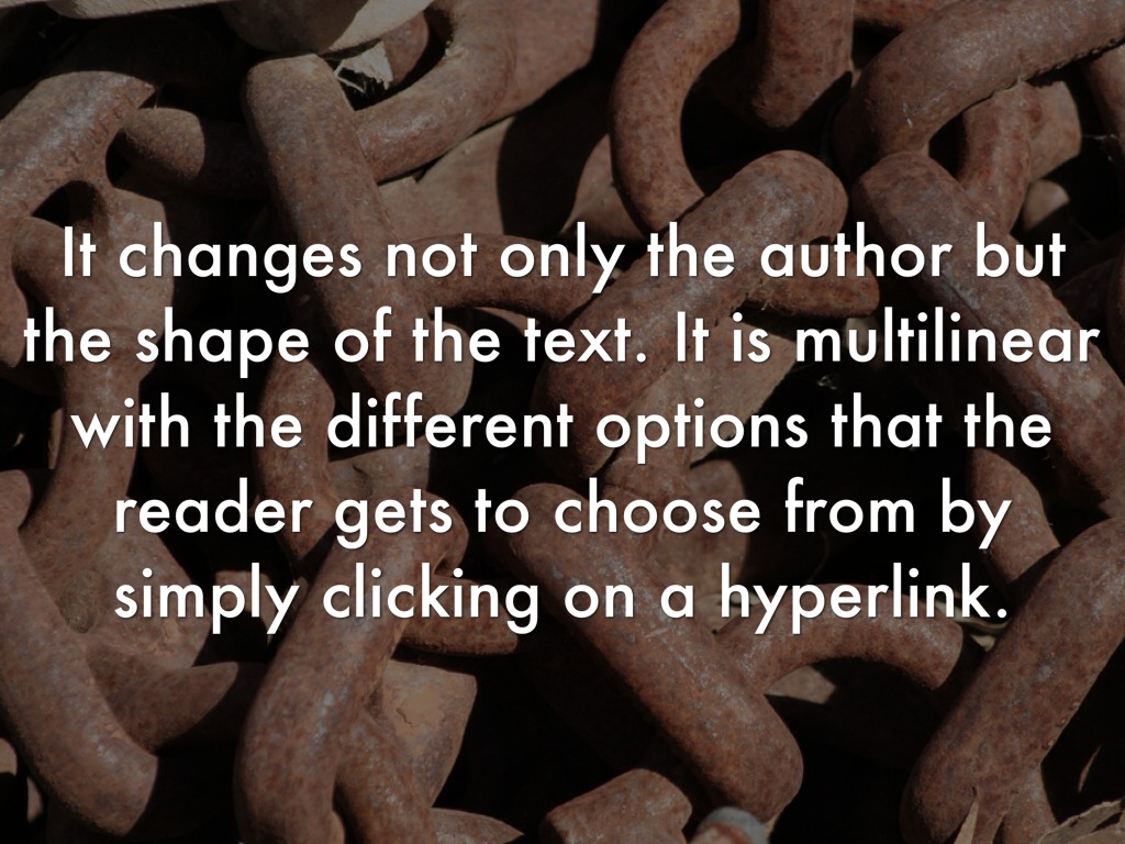 It changes not only the author but the shape of the text. It is multilinear with the different options that the reader gets to choose from by simply clicking on a hyperlink.
