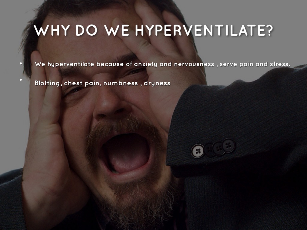 We hyperventilate because of anxiety and nervousness , serve pain and stress.