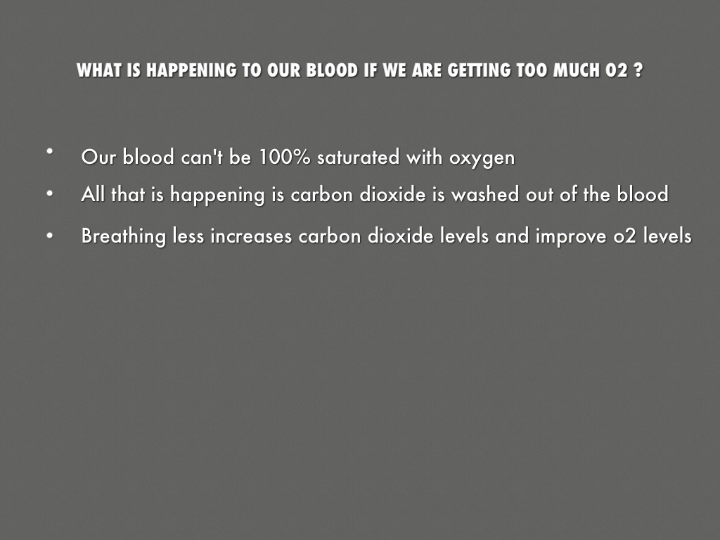 WHAT IS HAPPENING TO OUR BLOOD IF WE ARE GETTING TOO MUCH O2 ?