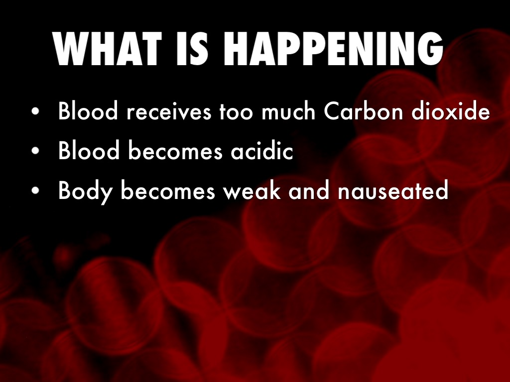 • Excessive breathing creates low levels of carbon dioxide in your blood.