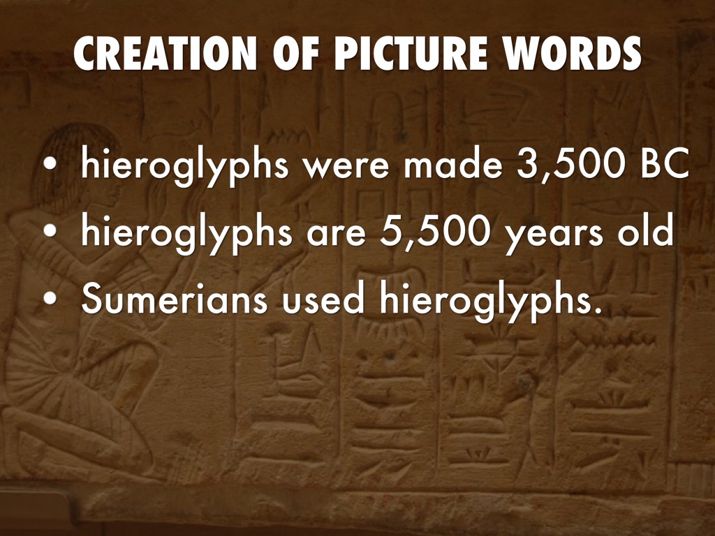 Animals were hieroglyphs and objects were hieroglyphs to.
