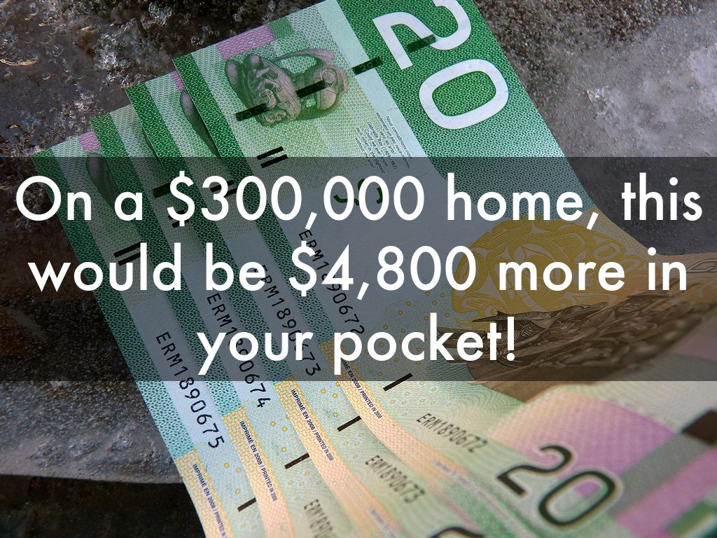 On a $300,000 home, this would be $4,800 more in your pocket!
