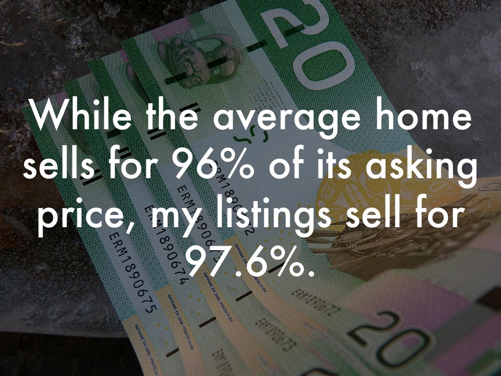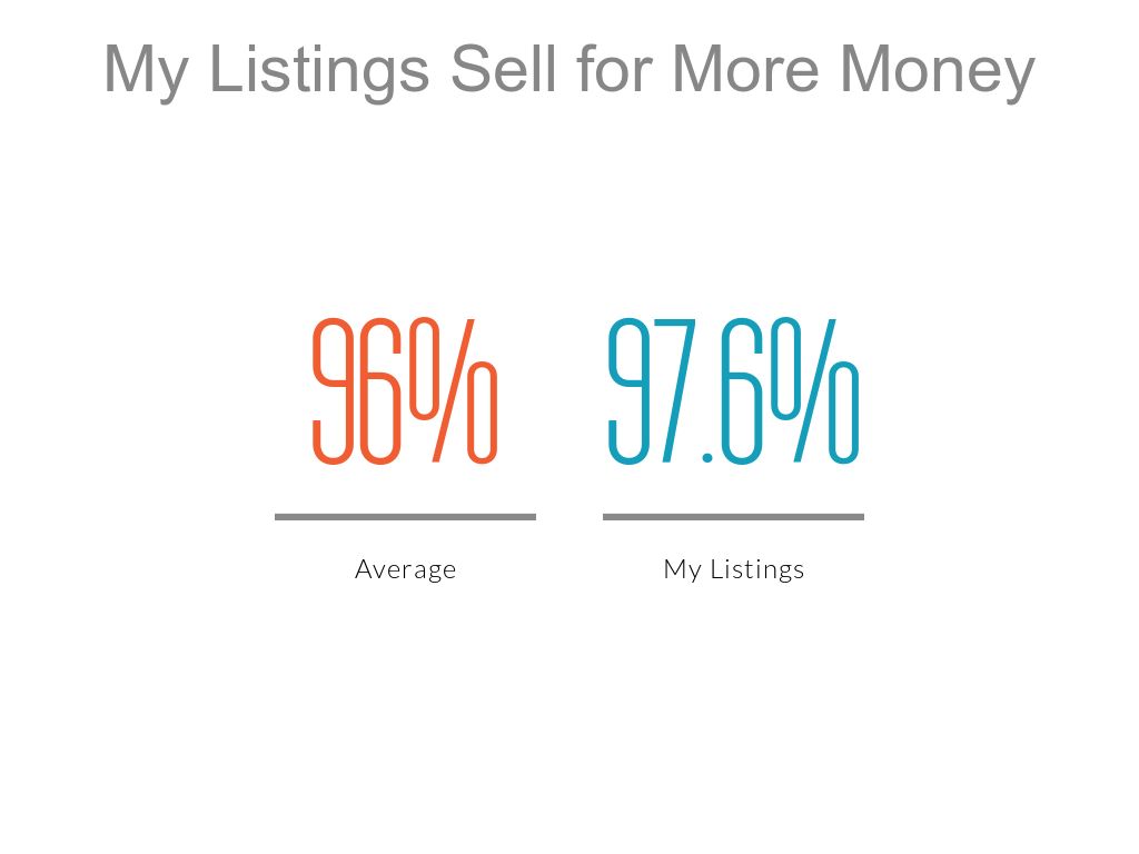 While the average home sells for 96% of its asking price, my listings sell for 97.6%.