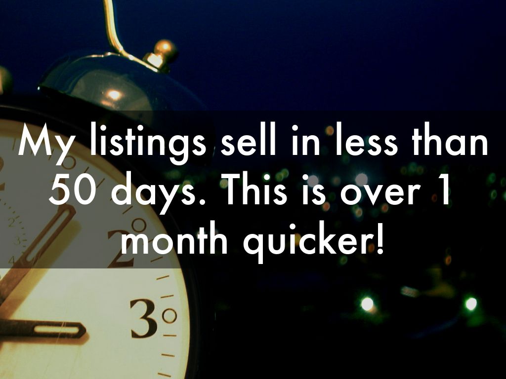 My listings sell in less than 50 days. This is over 1 month quicker!