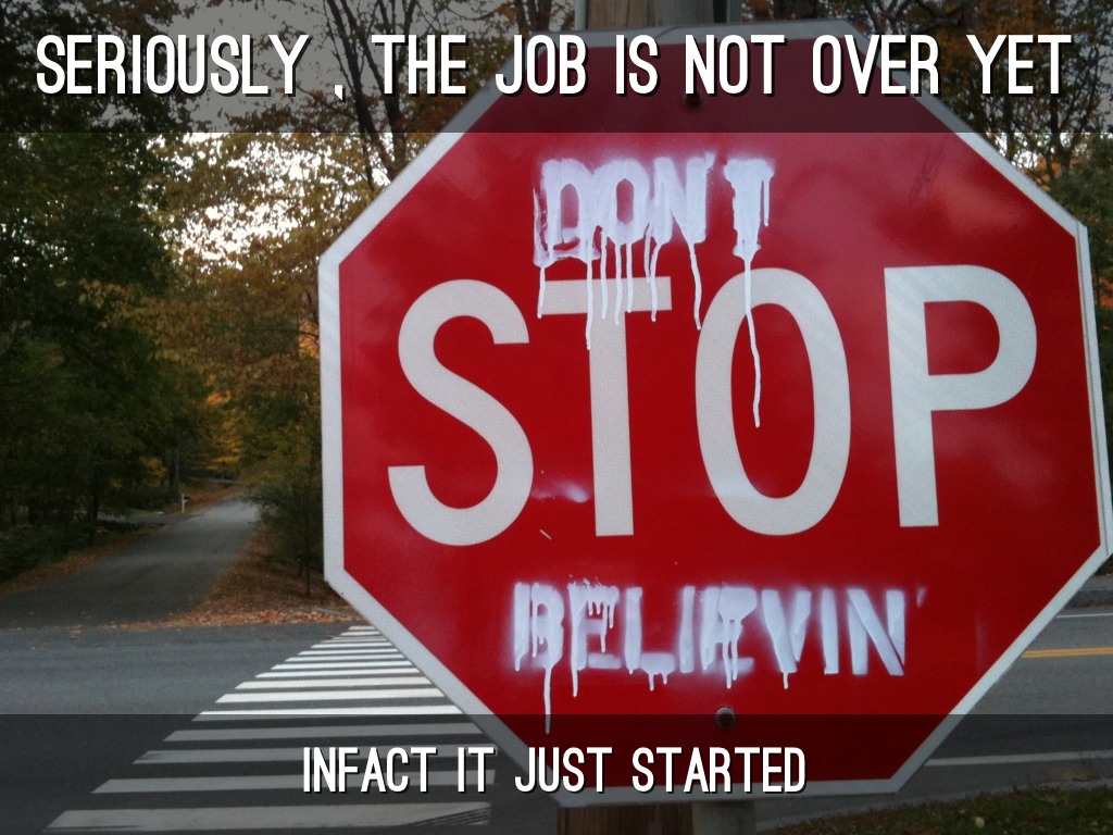 SERIOUSLY , THE JOB IS NOT OVER YET