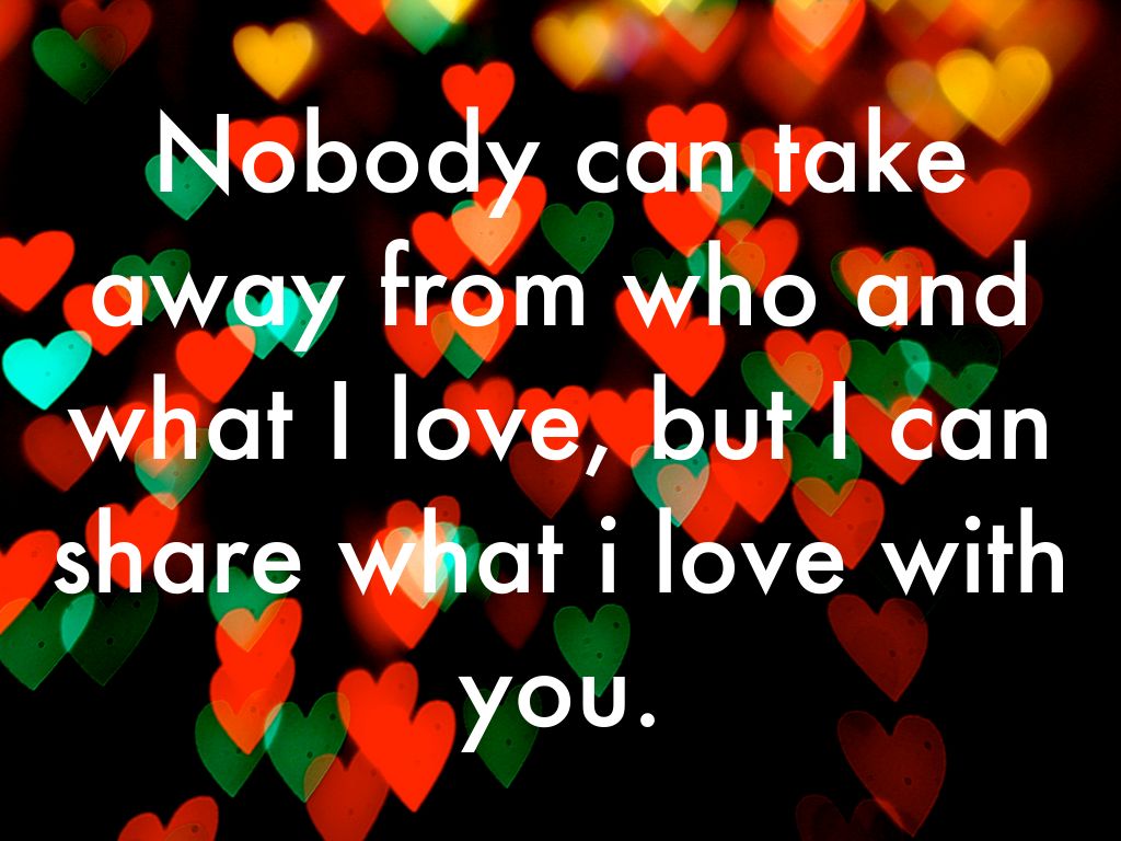 Nobody can take away from who and what I love, but I can share what i love with you.