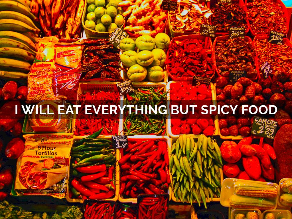 I WILL EAT EVERYTHING BUT SPICY FOOD