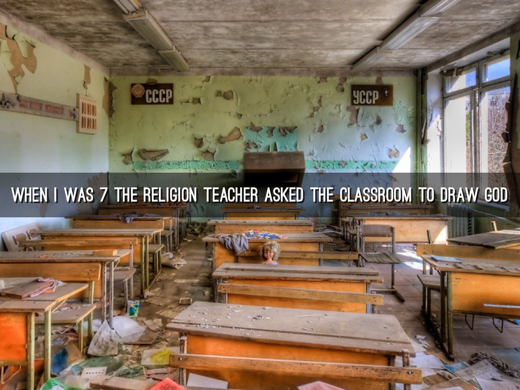 WHEN I WAS 7 THE RELIGION TEACHER ASKED THE CLASSROOM TO DRAW GOD