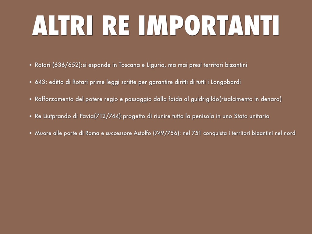 Re Liutprando di Pavia(712/744):progetto di riunire tutta la penisola in uno Stato unitario