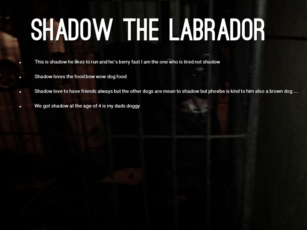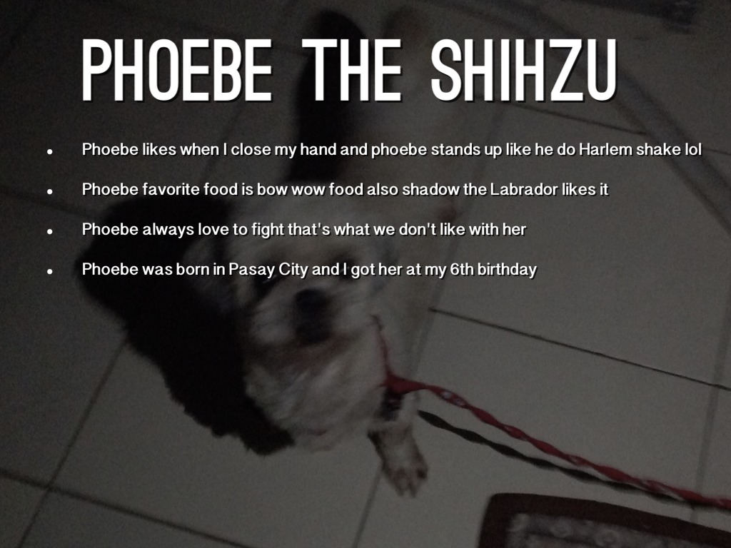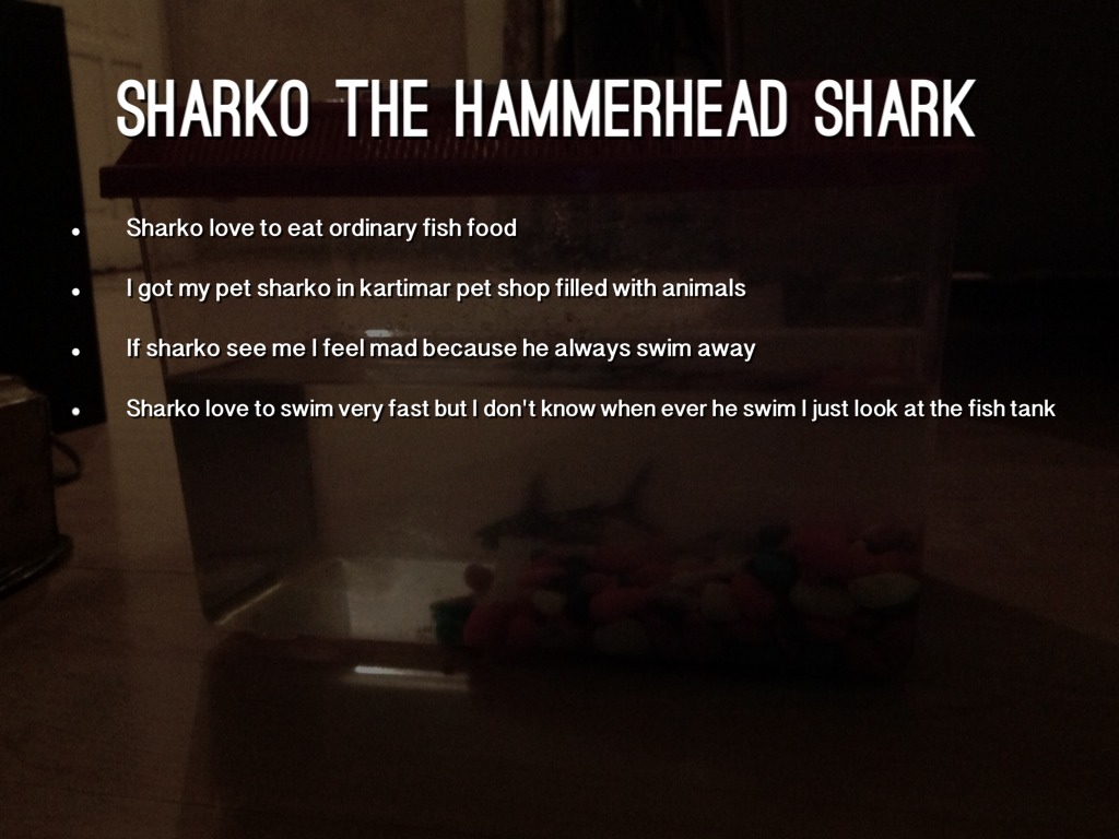 PETS NAMED PHOEBE THE SHIHZU , SHADOW THE LABRADOR , SHAKO THE HAMER HEAD SHARK AND ARIA THE ARUWANA