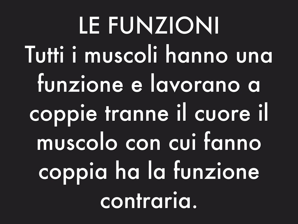 Tutti i muscoli hanno una funzione e lavorano a coppie tranne il cuore il muscolo con cui fanno coppia ha la funzione contraria.