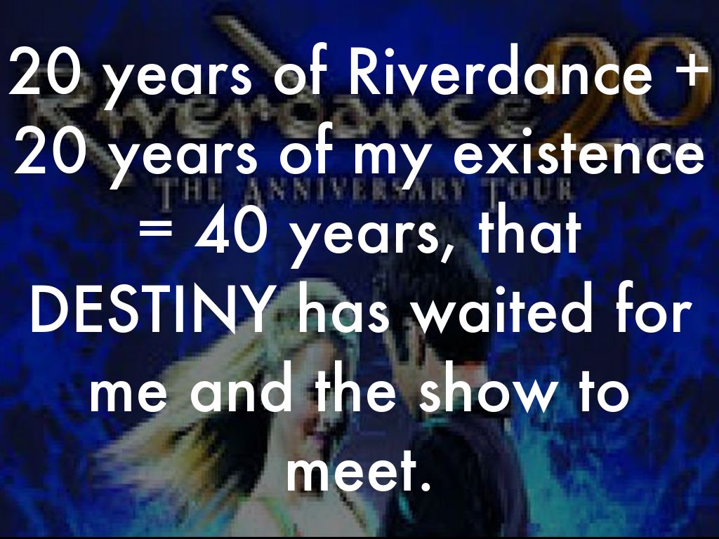 20 years of Riverdance + 20 years of my existence = 40 years, that DESTINY has waited for me and the show to meet.