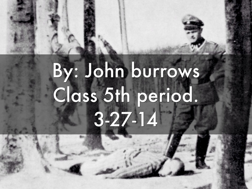 The old man slits his wrist to try to kill himself but the nazi guards force him to stand and hang. After the hanging the nazis force the other Jews to March around the gallows while the nazis drink alcohol and sing.