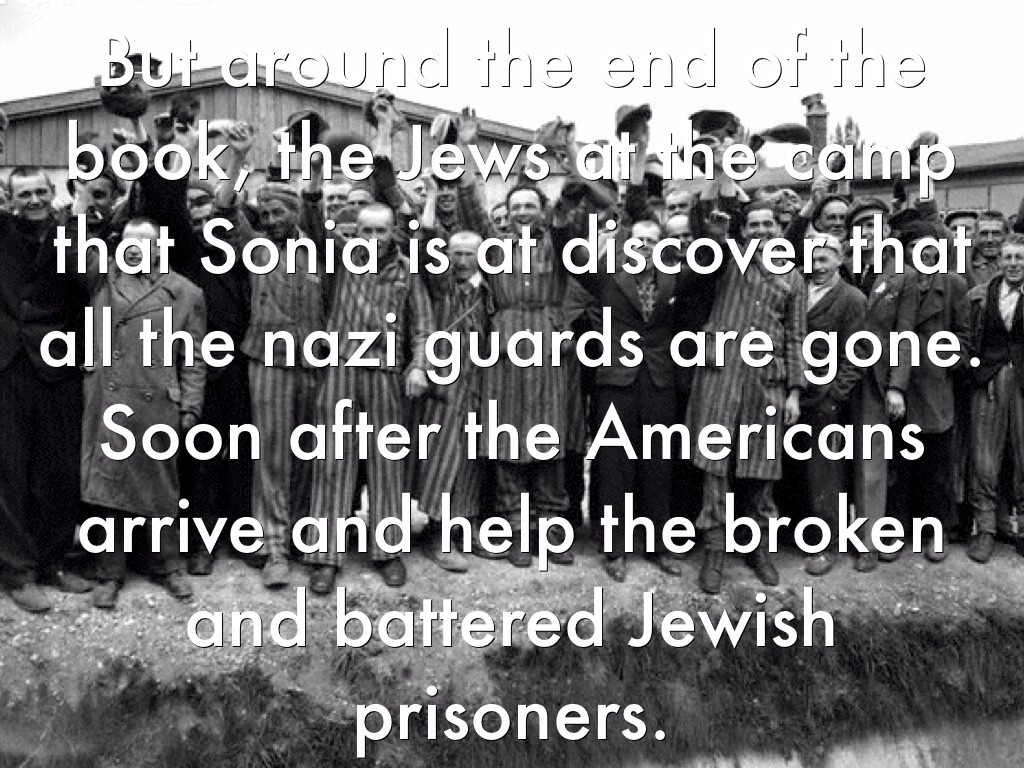 But around the end of the book, the Jews at the camp that Sonia is at discover that all the nazi guards are gone. Soon after the Americans arrive and help the broken and battered Jewish prisoners.