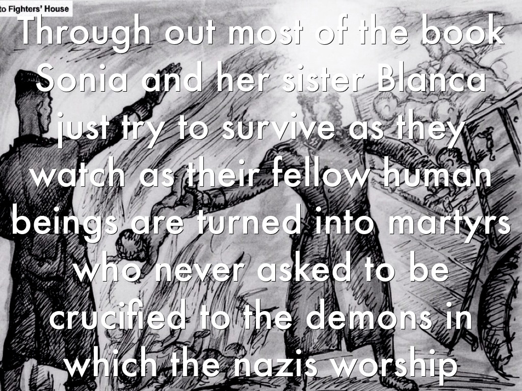 Through out most of the book Sonia and her sister Blanca just try to survive as they watch as their fellow human beings are turned into martyrs who never asked to be crucified to the demons in which the nazis worship