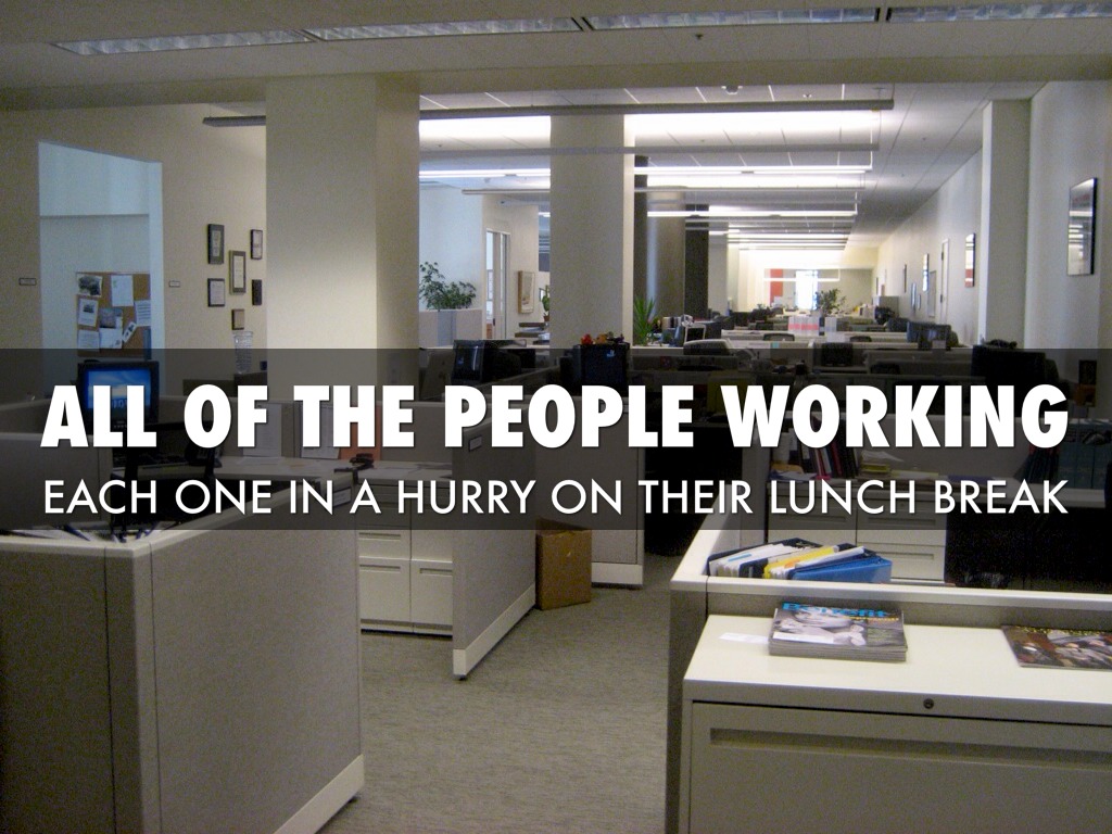 EACH ONE IN A HURRY ON THEIR LUNCH BREAK