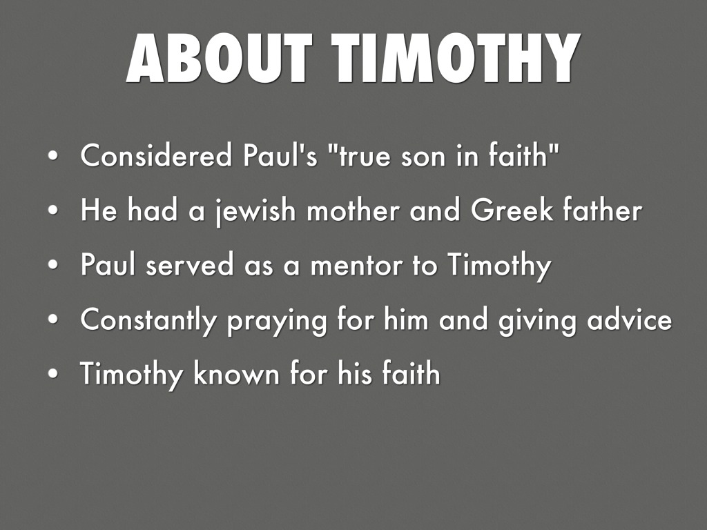For paul to encourage timothy by providing counsel concerning his own spiritual progress