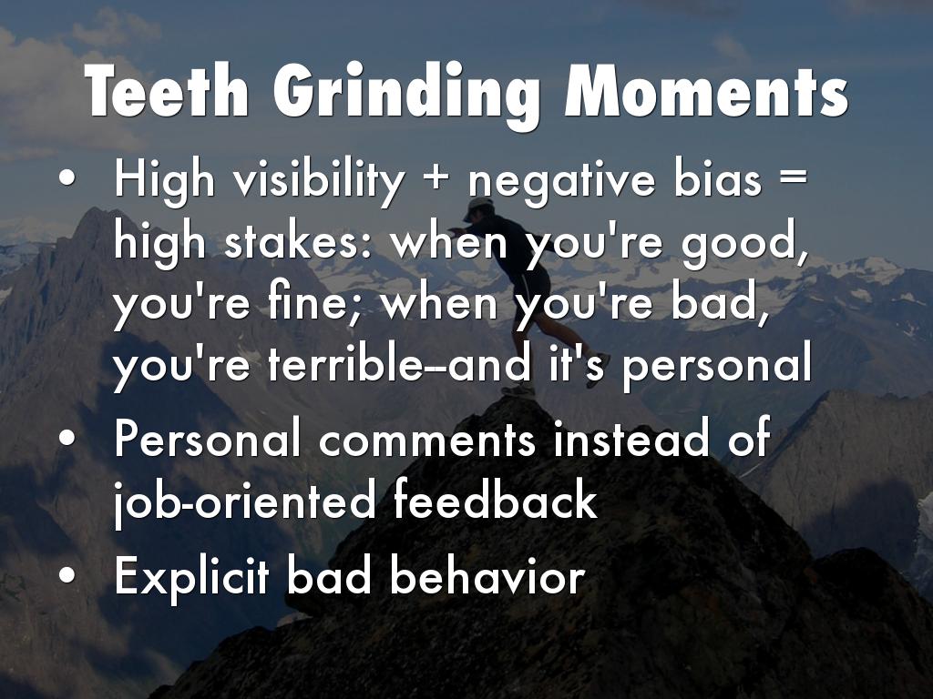 - High visibility + negative bias = high stakes: when you're good, you're fine; when you're bad, you're terrible--and it's personal