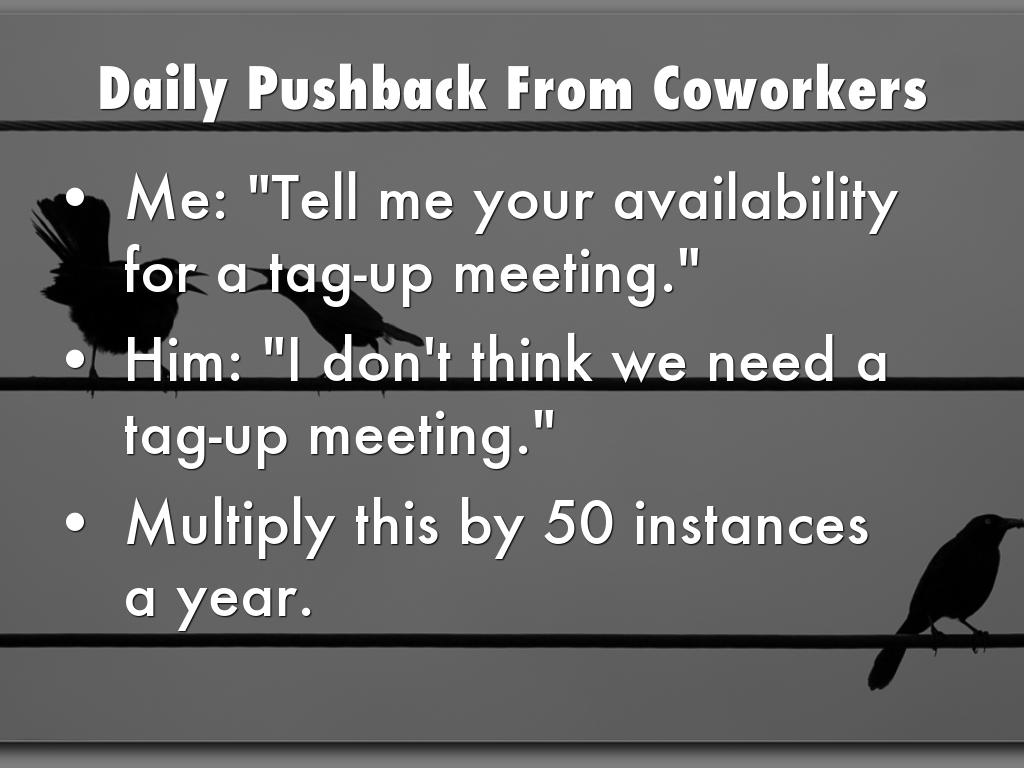 Raise your hand if this has happened to you: you're lent to a team, described as the second coming of Marie Curie, and when you don't live up to wildly outsized expectations, the team takes it personally. Right? Me too. The backlash was astonishing. I wasn't even allowed to just be a mediocre team member. There were plenty of other team members that were performing worse--and costing way more per head. But the team was somehow personally offended when *I* didn't live up to expectations.