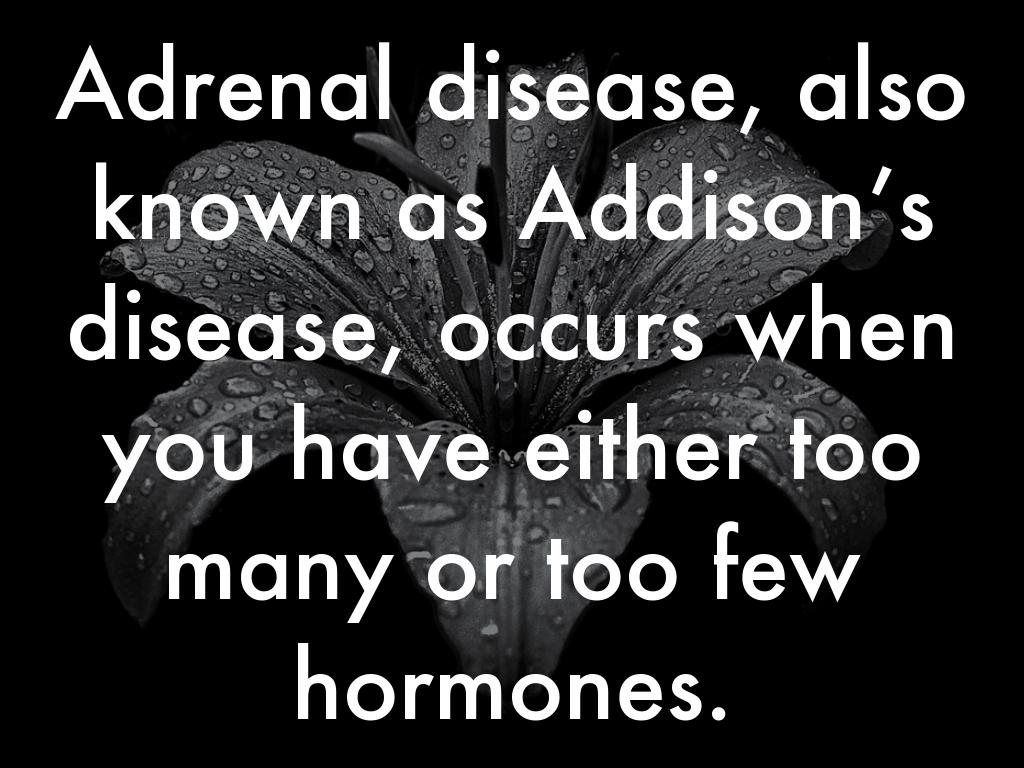 Adrenal disease, also known as Addison’s disease, occurs when you have either too many or too few hormones.