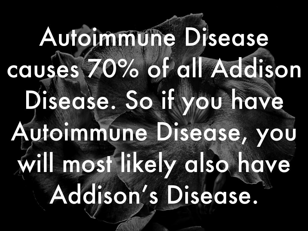 Autoimmune Disease causes 70% of all Addison Disease. So if you have Autoimmune Disease, you will most likely also have Addison’s Disease.