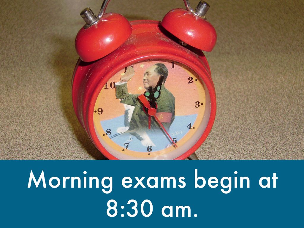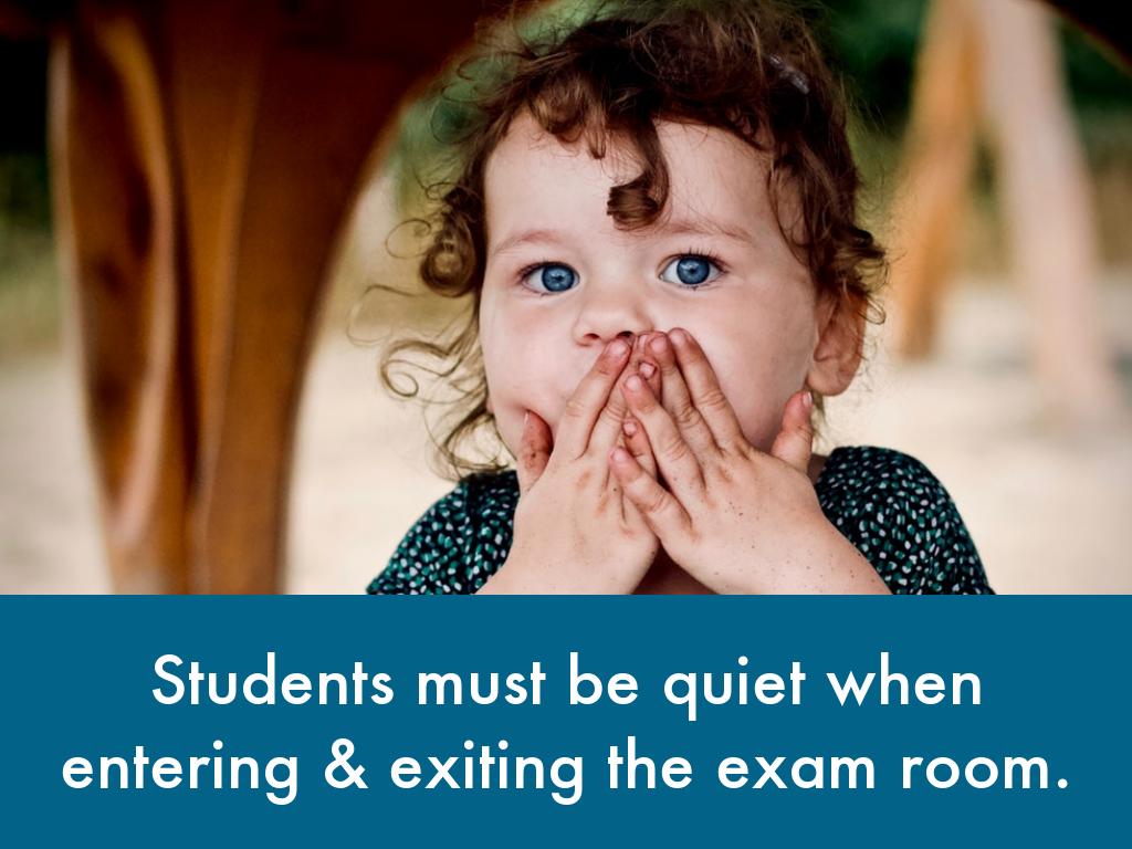 Be outside your exam room (south foyer for cafeteria/gymnasium) by 8:00 am to allow time for finding seats, listening to invigilator's instructions and previewing the exam.