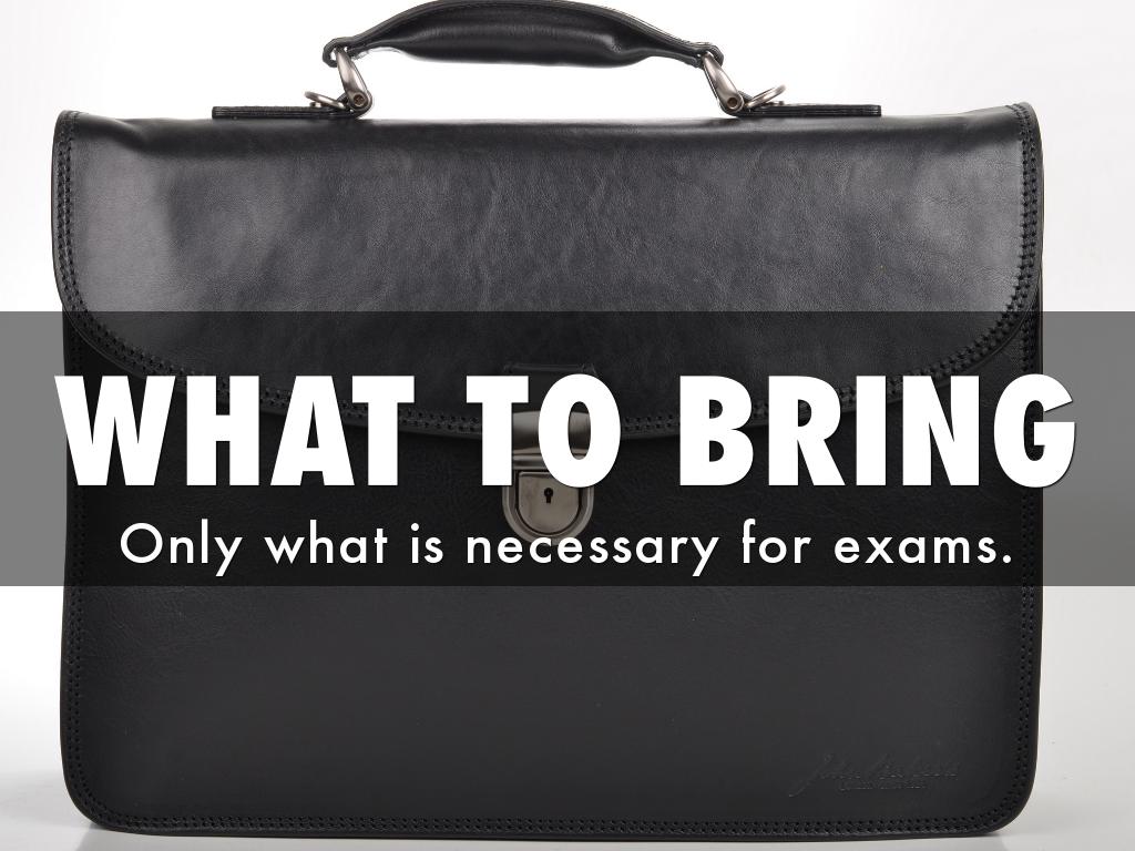 Ensure you have all the required materials at your desk before the exam begins. You will not be allowed to access your bags or locker once the exam has started.