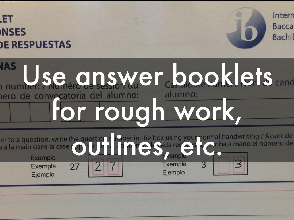 All rough work, outlines and exam answers are to be written in IB exam answer booklets or on IB graph paper.