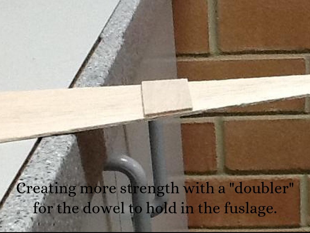 Creating more strength with a "doubler" for the dowel to hold in the fuslage.