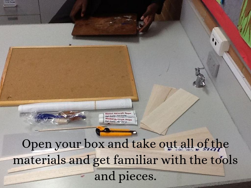Open your box and take out all of the materials and get familiar with the tools and pieces.