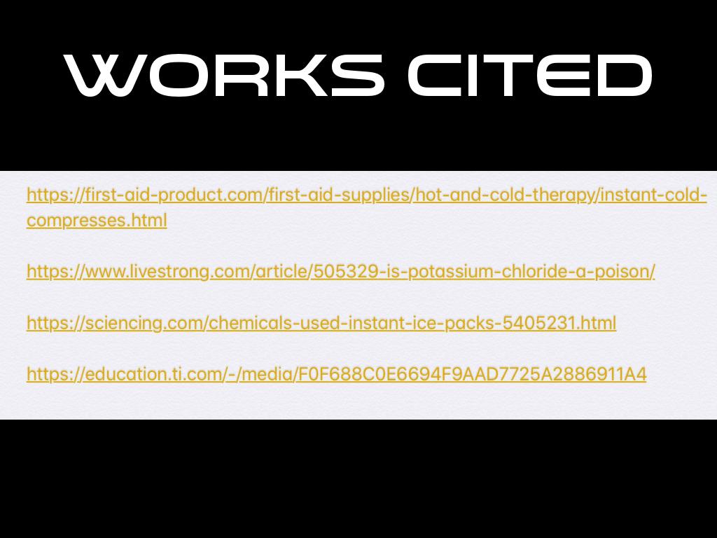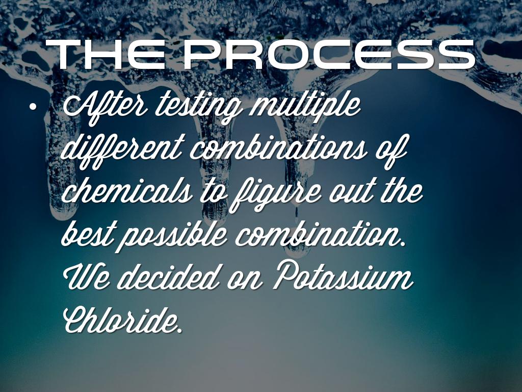 After testing multiple different combinations of chemicals to figure out the best possible combination. We decided on Potassium Chloride.