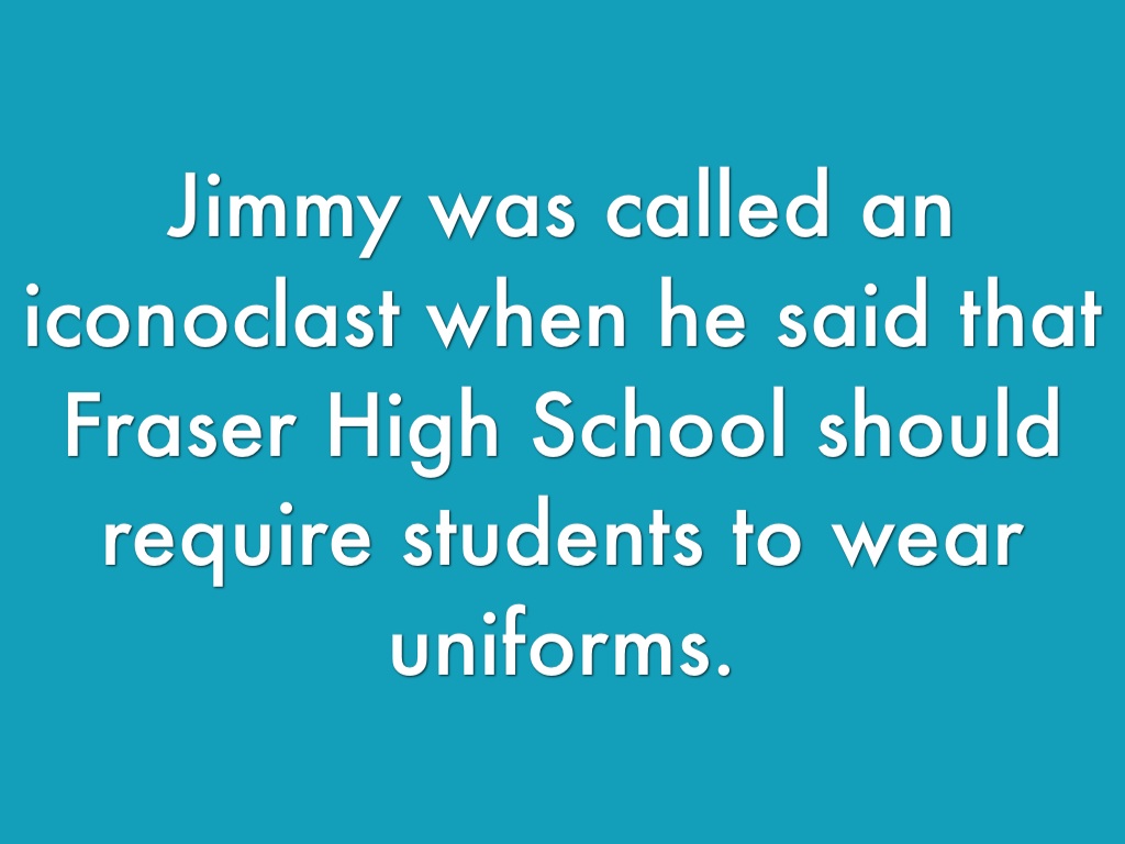 Jimmy was called an iconoclast when he said that Fraser High School should require students to wear uniforms.