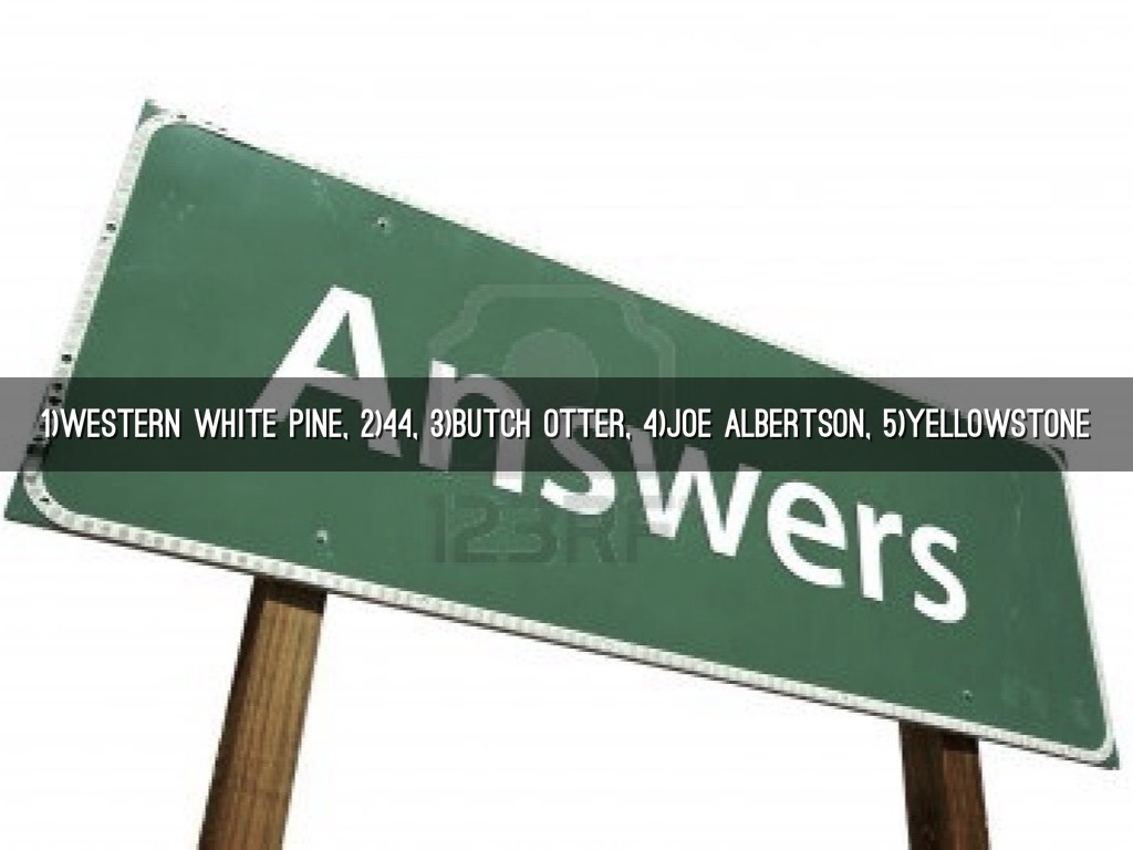 1)WESTERN WHITE PINE, 2)44, 3)BUTCH OTTER, 4)JOE ALBERTSON, 5)YELLOWSTONE